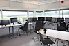 Rom for vakt og sambandsvakt er trukket frem i et karnapp for å gi god oversikt over flyplassen.