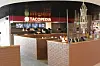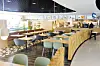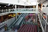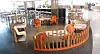 Spesielt legger man merke til at butikkene og serveringsstedene er plassert omkring, og delvis inne i, en sirkel der adkomsten mellom andre og tredje plan kommer opp i midten.