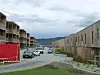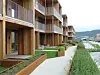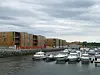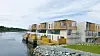 rekkehus, og 33 leiligheter fordelt på treetasjes blokker. Alt sammen utformet som en enhet med sjøen på tre sider, og et stort felles atrium mellom de to husrekkene i det avlange boligprosjektet.