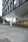 – Grunnet dårlige grunnforhold, og med varierende dybde til fjell, måtte vi bruke kraftige stålkjernepeler. Som en jordskjelvsikring i horisontalplanet, er bygget forankret til fjell med 37 stag på 12-15 meters lengde i bakkant mot åsen i vest. De to nederste etasjene med tilstøtende kjeller og avstivning er plasstøpte konstruksjoner, mens resten av bygget har prefabrikkerte konstruksjoner i betong, sier Skanskas prosjektleder, Stein Johnsen.