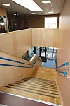 – Hovedtrappen og auditoriet er satt opp bare i treverk. Vanligvis er det støp eller bæreverk i stål, men her har vi bestilt en spesiallaget trapp.