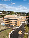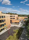– Tomta er lang og smal, og for å innfri programmet måtte deler av bygget bli fire etasjer høyt. Skolen er plassert slik på tomta at uteoppholdsområdet mot sør og vest er optimalisert. Den ligger i overgangen mellom to terrengnivåer slik at atkomst til øverste utomhusområde ivaretas også via bygget, forklarer Engene.
