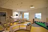 Et avansert industrikjøkken med kjøl- og frysemuligheter er på plass i første etasje. En kokk er ansatt, ikke bare for å kunne tilberede varm mat, men også for å kunne gi de små en første innføring i matlagingens verden.