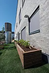 Landskapsarkitekt Peer Lehn-Pedersen forteller at kommunen har vært rause med beplanting, kvalitet og utstyr i lekeanlegget. Sammen med de til-liggende nærområdene, som den offentlige Nansenparken noen meter unna, kompenserer det for noen færre kvadratmeter utearealer.