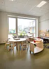 – Den tidligere reguleringen hadde ikke kapasitet nok til den bruken vi nå ser. Resultatet var en full omregulering for å få inn det behovet som denne barne-hagen fyller. Normen i Bærum har tidligere vært 28 kvadratmeter uteoppholdsareal per barn. Denne har nå 18,8 kvadratmeter. Men politikerne har lagt vekt på at utomhusarealene skal ha en høy kvalitet, der hver kvadratmeter har en funksjon eller et formål. Det har vi fått til her, forteller prosjektansvarlig Ole Grønningsæter i Bærum kommune Eien-dom om barnehagen som har et tilgjengelig uteareal innenfor sitt gjerde på 3.725 kvadratmeter.