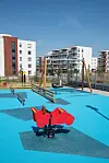 – Ved at bil- og sykkelparkering er lagt under bygget, og taket over administrasjonsfløyen i sør benyttes som uteområde, er utnyttelsen optimalisert. Det er også investert i noe dyrere gummidekker, som også har gode permeable egenskaper. De er kostnadsoptimale over tid, gitt at de får riktig vedlikehold underveis, påpeker Lehn-Pedersen.