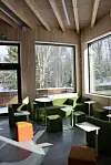 – Et mål i LowEx er å undersøke hvordan vi kan optimalisere varmesystemet slik at varmepumpen kan få gode driftsforhold, og lavest mulig temperatur til oppvarming. Når det gjelder materialer og naturlig belysning, har skolen en bindingsverk-konstruksjon bygget med kledning i termofuru med lav bundet energi, god holdbarhet og lite vedlikeholdsbehov. Alle oppholds-rom er plassert langs fasaden, hvor store vinduer sørger for belysningen, noe som reduserer behovet for kunstig belysning, sier Stene