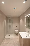 – Det er derimot et prosjekt med mye skreddersøm og veldig liten grad av gjentagelseseffekt. Geometrien gjorde at vi, med unntak av plattendekker og trapper, valgte plasstøpt løsning og det var heller ikke noe poeng å bestille prefabrikkert baderom i et prosjekt med 20 ulike bad, sier Hole.