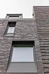 Boligprosjektet, som er tegnet av Solli arkitekter AS, har en bakgård med fasader med liggende royalimpregnert trekledning fra Møre Royal, mens ut mot gaten er det to ulike tegltyper fra Randers, som ifølge Hole er murt opp i såkalt relief. Gavlene er pusset og boligblokken har skråtak som er båndtekket med sink.