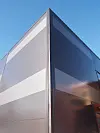 Den nye administrasjonsdelen som er koblet til den gamle låven, er bygget opp i samme form som en gammel låve som tidligere stod på tomta, men det nye bygget har fått en fasade i sementbaserte fasadeplater.