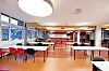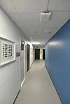 – Alle overflater ble fornyet og nye akustiske himlinger og belysning montert. Det ble også utført forbedringer på universell tilgjengelighet, kontrast og taktil merking. Eksisterende utvendig trapp/rampe til bi-inngang ble forbedret, sier Strandenes.