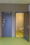 Det er i hovedsak linoleum med hulkiler på gulv, supplert med slipt betong, mye spilekledning av ask på vegger og i stor grad systemhimlinger. Det er 27 cm isolasjon i yttervegger og i snitt 30 cm i taket. Glassfasadene her en U-verdi på 0,8. Trykktesting viser en luftveksling på 0,7 ganger per time.
