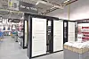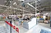 Butikkdelen på 2.000 kvadratmeter har kun bærende søyler langs yttervegger og mot lagerdel. Både butikkdel og lager har åpne himlinger. Det er systemhimling i kontorer.