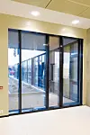 – Det er lagt stor vekt på materialvalg og utforming av vegger, gulv og himlinger, noe vi anser som svært viktig for å gi rommene karakter og vennlighet. Fargepaletten som er gjennomført for hele bygget kan utvendig ses i fargelagte glassfelt og hvit, glasert keramisk flis. Denne er presis og har god holdbarhet, den er også benyttet på tekniske rom på taket for å oppnå en harmonisk helhet. Innvendig har paletten et utvalg av grønne og brunrøde fargevariasjoner som er brukt vekselvis for å skape variasjon, intimitet og lune interiører. Gulv og himlinger har et varmt, lyst preg. Det er også et vesentlig innslag av treoverflater, både på vegger og i himlinger. Noen steder er trematerialer brukt til å forme lune og hyggelige sittemøbler, sier Bech.