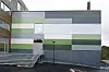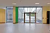 I den eksisterende delen av bygget er hovedinngangen oppgradert med større sluse og skyvedører. Hele bygget har universell tilkomst. For å dempe støy er det perforerte q-dekker i taket og spilekledning på veggene i idrettshallene.
