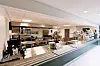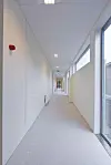 Bygget inneholder også kontorer, møterom, kantine og garderober. Mellom den eksisterende og den nye bygningsmassen ligger det en stor takterrasse.