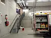 Bygget inneholder for brannmann-skapene i nedre plan flere garasjer og vaskehall for kjøretøy, i tillegg til to verksteder og flere garderober for å håndtere uren og ren sone for brann-mannskapet. Ambulansetjenesten har en egen garasje i det nederste planet.