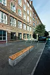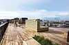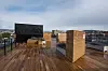I tillegg til å oppgradere gatene er det flate taket, der det tidligere ruvet usjarmerende ventilasjonsaggregater, nå lagt til som et generøst uteoppholdsareal for beboerne. På 520 kvadratmeter med utsyn til de sju blåner, er det nå etablert en treterrasse med sedum på ytterkanten, plantekasser og levegger.