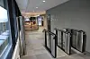 Hovedinngangen til bygget er fra Bøkkerveien i tredje etasje. Etasjen er tilbaketrukket glassvolum, som spenner over Karvesvingen. Den rommer møteromsavdeling og kantine.