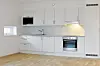 Innvendig har leilighetene hvitmalte vegger med hvitpigmentert eikeparkett. Standard kjøkkeninnredning leveres fra HTH, og badene får vegghengt toalett, dusjvegger som kan slås sammen og downlights med dimmer.
