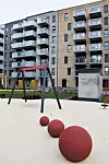 Byggene omkranser i tillegg en større hage med pergola, egne sjakkbrett, lekeplass og romslige gressarealer. De med ekstra grønne fingre kan også dyrke mat og blomster i parseller.