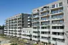 Det flotte boligkomplekset har 190 leiligheter med størrelser fra 39 til cirka 153 kvadratmeter i totalt åtte etasjer. Leilighetene har prefab støpte balkonger, utenom leilighetene på bakkeplan som er levert med platting.