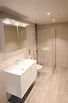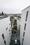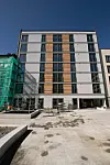 – Vi har jobbet veldig tett på naboene, klin inntil de andre byggene. Blant annet måtte vi helspunte kun 40 centimeter fra nabobyggene. Det er også en trang tomt med tanke på leveranser og logistikk, så alt ble planlagt på timen. Hvis bade-romskabinene kom en time for tidlig, så måtte de vente, legger han til.