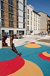 Entreprenøren er nå i ferd med å ferdigstille parkområdet i bakkant av prosjektet. Her har et område preget av viltvoksende vekster og utfordringer med overvann, blitt erstattet av en park naboene lengter etter å ta i bruk. Parken har tilkomstmulighet både fra Thereses gate gjennom en passasjei bygget, fra Sofies gate og fra Eugenies gate.
