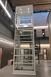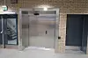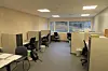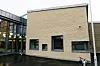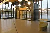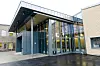 Hovedinngangspartiet har store vindusflater samt to glasslisser i taket. Det er store vinduer i hele bygget.