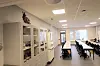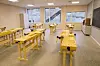 – Alle baser har et eget handicaptoalett og vanlig toalett, i tillegg til garderoberom. I andre etasje holder administrasjonsavdelingen til i tillegg til basene. Her er også skolens kantine med kjøkken, i tillegg til et bibliotek, sier Johansen.