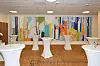 Den lokale billedkunstneren Nils Eger har utsmykket bygget, blant annet med store bilder i kafeen i første etasje.