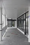 innslipp. Bærekonstruksjonen er i prefabrikkert betong. Taket er isolert og tekket med folie. Fasadene har bærende, slipte betong-