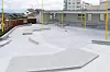 Skateparkens uteområder har fine natursteinsmurer, belysning og beplantning. Alt utvendig metall (rekkverk, lysmaster o.a.) er lakkert gult. Deler av skateparkens andre byggetrinn ligger under tak.