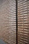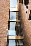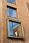 Det er brukt en kullbrent Petersentegl i fasadene, der felles-arealene mot første etasje markeres med annethvert skift med en lysere stein. Det er også store innslag av beslag i tambak, i tillegg til kobber i de utstikkende vinduskarnappene.