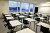 Den spektakulære utsikten er det første som slår deg når du kommer inn i den nybygde ungdomsskolen som ble tatt i bruk etter juleferien. L2 Arkitekter har utrustet bygget med store panorama-vinduer nedover mot Ulvesundet der skipsleden langs norskekysten går. Landemerket Måløybrua er rett i synsfeltet. Elever og lærere kan daglig få med seg all aktivitet på kystens Riksvei 1.