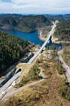 – Mange veibruer har lengre spenn, men vi vet ikke om jernbanebruer med så langt spenn. Vi har lagt ned mye arbeid med å utforme brua så den ser bra ut, og synes vi har fått det til. Sammenligner du for eksempel med veibruene over Langangen, så er det en helt annen generasjon bru. Hallevannet bru har avrundede former og buede kanter, og vi har gjort mye for få den så slank som mulig siden den ligger lavt i terrenget, forteller prosjektlederen.