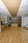 Hun forteller videre at materialvalg innendørs er gjort i diskusjon mellom byggherre, brukere, arkitekt og entreprenør for å finne de beste løsningene for et trivelig og funksjonelt senter.
