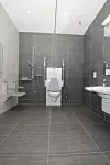 Prosjektleder hos byggherrerepresentant WSP, Torfinn Bobakk, forteller at ønsket om boliggjøring blant annet har ført til at man valgte en takskinne på beboerrommene som er integrert i himlingen. Det har igjen ført til spesielle krav til baderomskabinene i prosjektet.