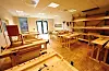 Fellesareal, sentralrom og noen korridorer, har slipt betonggulv. På sløyd- og håndverksrommene er det lagt industriparkett, og dans/musikkrommet har fått spesiell «dansevennlig» parkett. Ellers er det vinylgulv. Toalettene har flis på vegg, og vinyl på gulv.