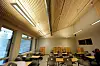 – Det visuelle inntrykket av skolen er fantastisk, både utenfra og inne i bygget, sier hun. Interiør, fargevalg, møblering og stil har falt i smak. Lærerne setter pris på et fleksibelt skolebygg med mye bedre plass til undervisning, og at utstyr som de interaktive tavlene fungerer meget bra. Støydempingen er god både i klasserom og fellesareal som for eksempel amfiet. Lærerne er også tilfredse med egne arbeidsplasser, et flott personalrom og god tilgang til grupperom.