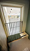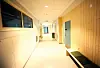 Fra hovedinngangen ledes man rett inn i sentralrommet som også har utgang mot syd til et stort U-formet ute- og aktivitetsområde. Det er skjermet mot vær og vind av fløyene på hver side, og solrikt de dagene det er sol.