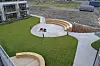 Mellom og rundt Amfi-blokkene har utbygger OBOS Nye Hjem lagt seg i selen for å gjøre det trivelig for beboerne. Utearealene er nennsomt og nydelig opparbeidet, med støpte, buede stier mellom plenene, lekeplasser med et rikt utvalg av lekeapparater for ungene – og treningsapparater for de mer voksne. Sittegrupper – bord og benker – er å finne nær sagt over alt.