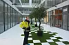 – Disse løsninger er valgt av flere ulike årsaker, en av dem er at bygget har vinduer som går helt fra himling til gulv, slik at vi ønsket å unngå å måtte lage hindringer i form av el-kanaler og radiatorer, sier Arstad.
