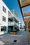 Hovedinngangen til leilighetene er fra Teglhagveien, som når prosjektet står ferdig vil ha status som miljøgate. I bakkant av bebyggelsen mot sør ligger et skjermet og påkostet gårdsrom, forbeholdt beboerne.