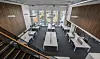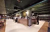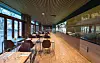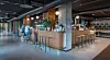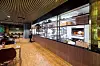 – Vi ønsket et levende bygg som blir brukt store deler av døgnet. Da vi begynte å rive hadde vi et prisoverslag, som inkluderte en kantine, ikke en restaurant. Nå fungerer restauranten som kantine på formiddagen for leietakerne, men er også åpen for øvrige gjester, påpeker Johannessen. Baren, med en liten konsertscene, har egen inngang fra jernbanestasjonen, og åpner allerede kl. 07.