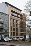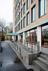 – Glassfasaden mot nabobygningen er både en måte å øke arealet på, men også skape en felles forbindelse der man kunne legges felles sosiale soner. Det er blitt en ventilert rømningsvei, samtidig som det gir utsikt mot sørvest. Dette grepet har gitt en bedre funksjonalitet og fleksibilitet i bygget, siden hver etasje nå kan deles inn for to eller tre leietakere. På grunn av krav om heis med båretilgang, ble heisenes plassering noe endret, sier Friis.