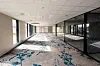 Inne i kontordelen har interiørarkitekten fått leke seg vesentlig mer enn det som er vanlig i denne type bygg. Det har resultert i et bygg hvor gulv, alt fra mikrosement til tepper og parkett, og farger forandrer seg nærmest fra rom til rom.