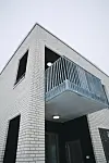 Underetasjen er i betongelementer og fasader forøvrig er i lys tegl, som ifølge arkitekten uttrykker soliditet og varighet og reflekterer lyset fint. Det er store glassflater både i leilighetene og i fellesarealene. Alle leilighetene har privat veranda med rekkverk enten i tegl eller metall, supplert der det er nødvendig med tre eller glass. Inne i verandaene er det mørkt royalimpregnert trepanel, og vinduene er i aluminium. Taket er utstyrt med solcellepanel på store deler av takflatene.