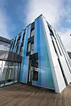 Ifølge arkitekt Halvorsen & Reine har utgangspunktet for fasadene, hvor taket er den femte fasaden, vært et bygg som skal gi tydelige assosiasjoner til en isbre.