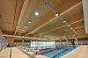 Hun forteller videre at svømmehallkonseptet er unikt. Bortsett fra sålen i lavkarbonbetong, er hele hallen i massivtre, også takløsningen der det er brukt 26 meter lange og opptil 2,3 meter høye bjelker i massivtre. Himlingene er kledd med elementer fra Lignatur. – Denne svømmehallen er den første i sitt slag i Norge der det kun er brukt massivtre, sier hun.